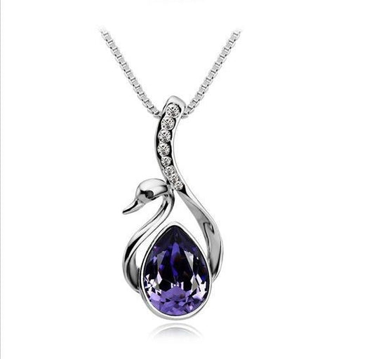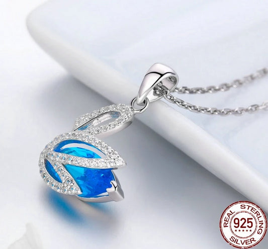 925 Sterling Silver Cubic Zirconia and Rhinestone Swan Pendant Necklace