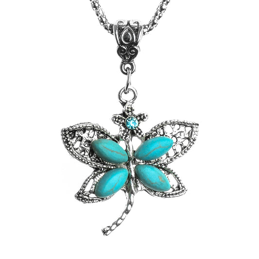 Blue Opal Stone and Rhinestone Owl Pendant Necklace Women’s Jewelry