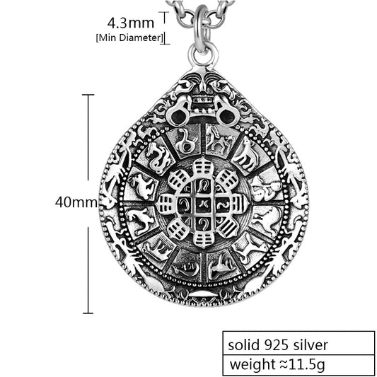 925 Sterling Silver Round Pendant Necklace Chinese Zodiac For Men