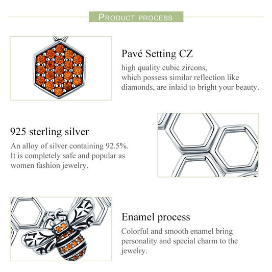 925 Sterling Silver Bee Honeycomb Pendant Necklace For Women