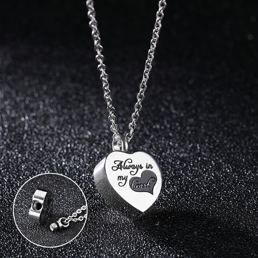 Titanium Silver Heart Cremation Pendant Memorial Necklace