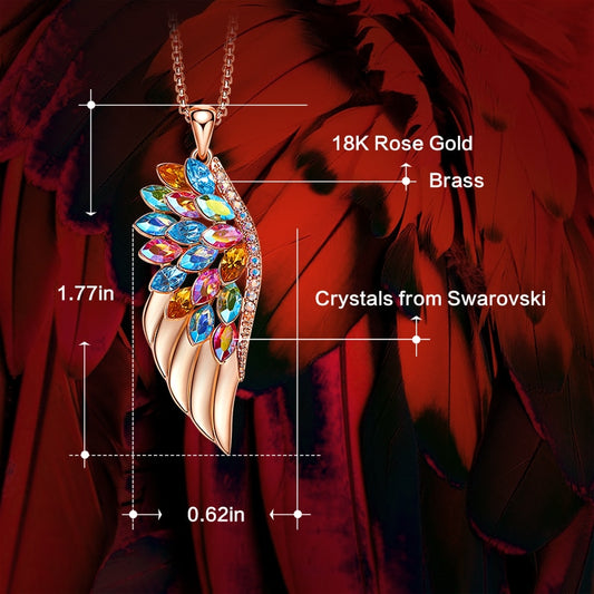 Phoenix Wing with Multicolor Crystal Pendant Necklace