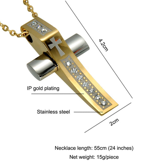 Gold and Silver Murano Glass Cross Pendant Necklace Christian Jewelry