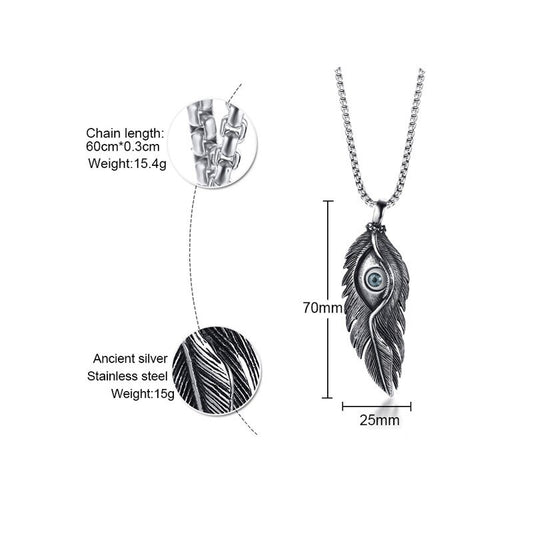 Men’s Stainless Steel Feather Evil Eye Pendant Necklace