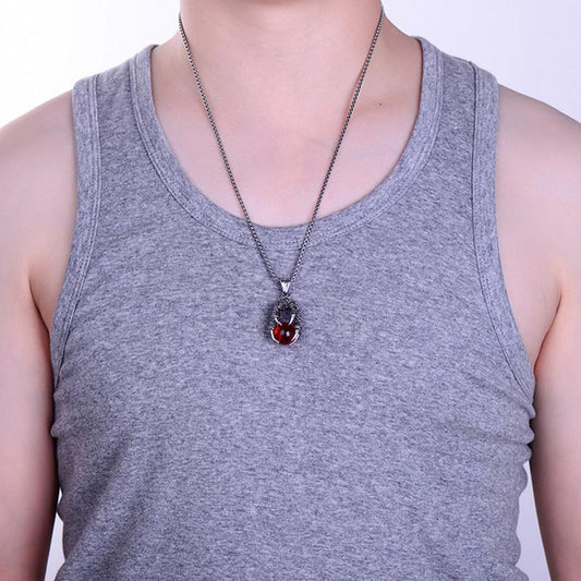 Silver Dragon Claw Holding Red Stone Pendant Necklace