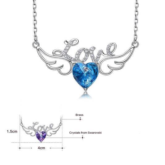 Angel Wings with Love Crystal Heart Pendant Necklace