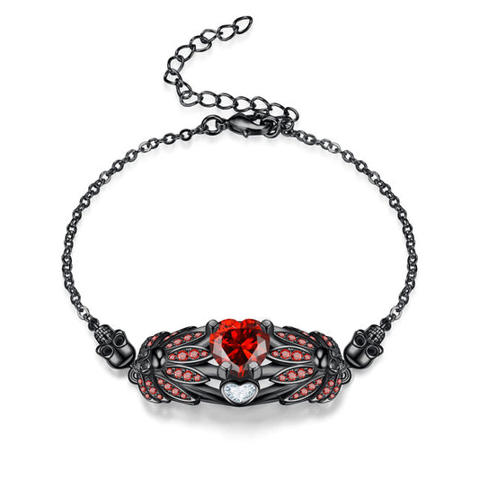 Skull and Crystal Heart Cubic Zirconia Fashion Bracelet