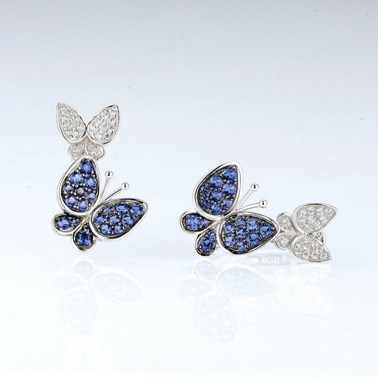 Blue and White Cubic Zirconia Butterfly Stud Earrings Women’s Jewelry
