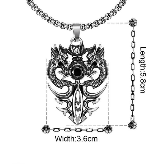 Stainless Steel Silver Vintage Double Dragon Pendant