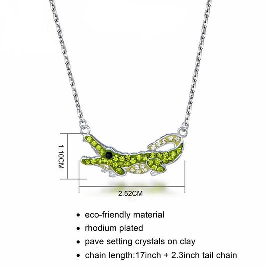 Green Crystal Crocodile Pendant Necklace Women’s Jewelry
