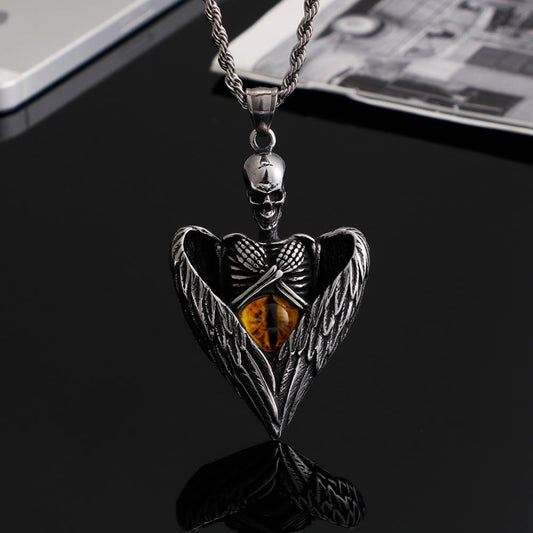 Stainless Steel Angel’s Skull Cat’s Eye Pendant Necklace