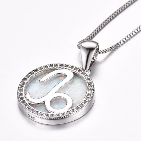 Sterling Silver Libra Pendant Necklace with Crystal Stone and Pearl Blue Opal Center