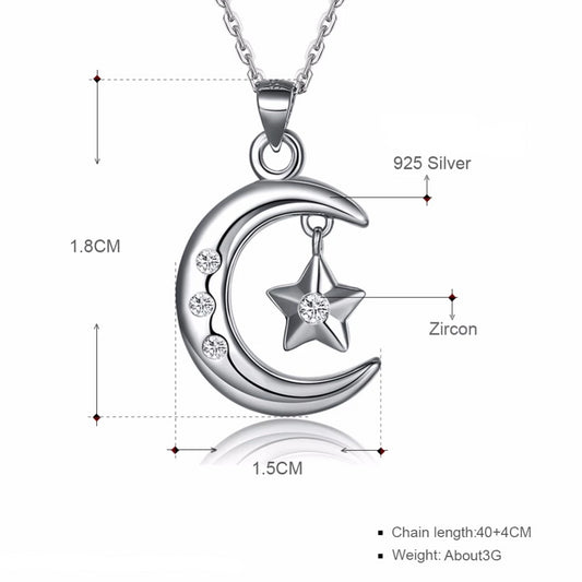 925 Sterling Silver Crescent Moon with Cubic Zirconia Pendant Necklace