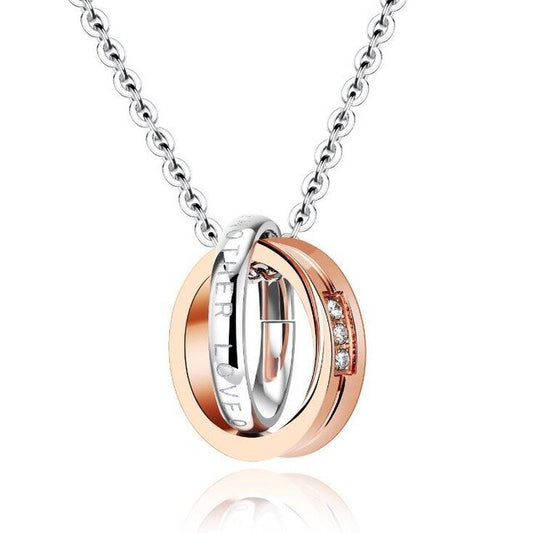 Couple Titanium with Cubic Zirconia Pendant Necklace Matching Set