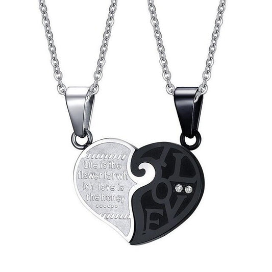 Stainless Steel Puzzle Couple Necklace Pendant Set