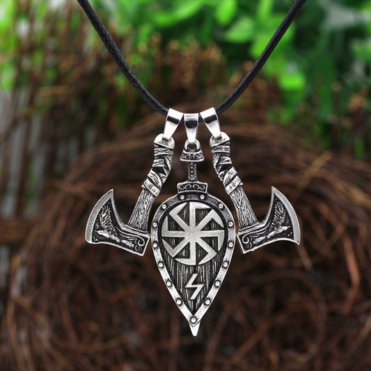 Silver Plated Viking Axe and Shield Pendant Necklace