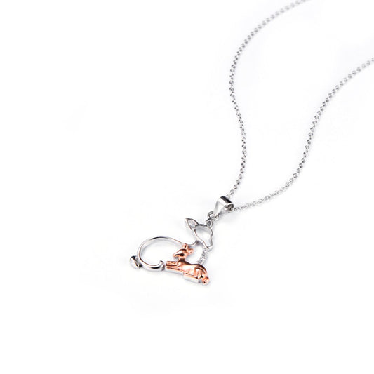925 Sterling Silver Mother & Baby Deer Pendant Necklace