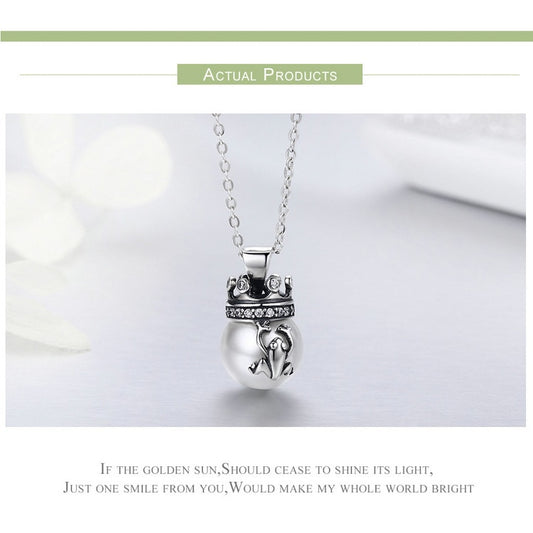925 Sterling Silver Crown of Frog Prince Pendant Necklace for Women