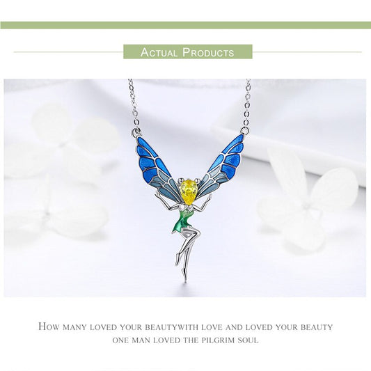 925 Sterling Silver Butterfly Fairy Pendant Necklace
