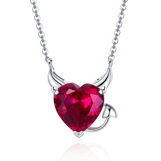 925 Sterling Silver Angel and Demon Heart Red Cubic Zirconia Pendant