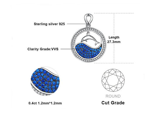 925 Sterling Silver Blue Ocean Dolphin Pendant Necklace