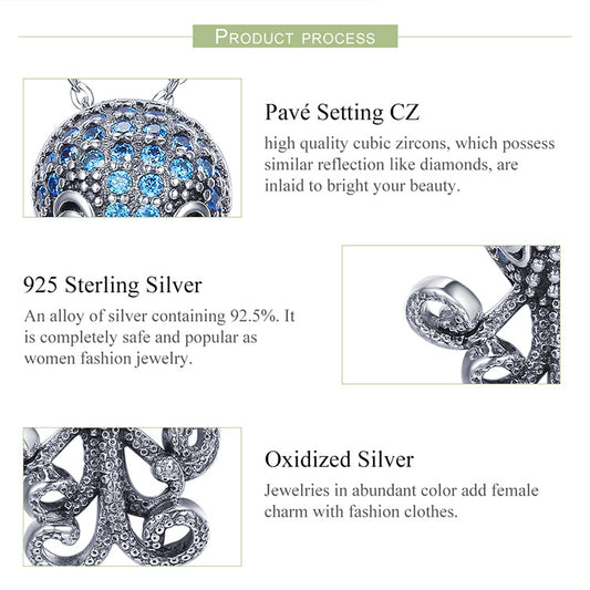 925 Sterling Silver Marine Octopus with Cubic Zirconia Pendant Necklace