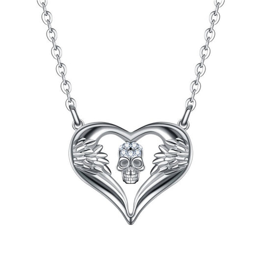 Crystal Skull and Angel Heart Fashion Necklace