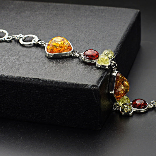 Multicolor Baltic Synthetic Amber Honey Chic Link Bracelet