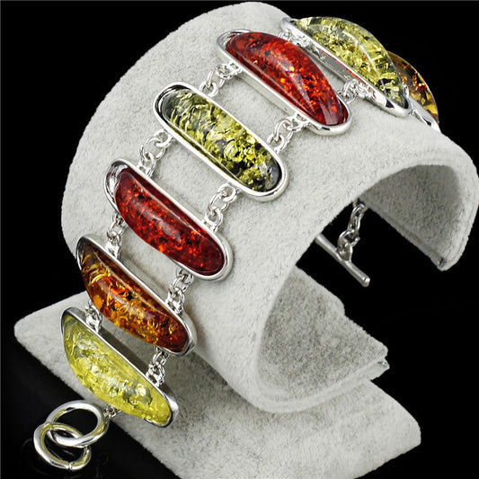 Elegant Multicolor Baltic Synthetic Amber Link Chain Bracelet