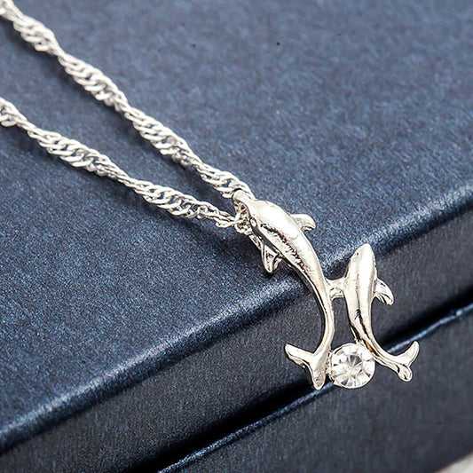 Double Dolphin Rhinestone Pendant Necklace Women’s Jewelry