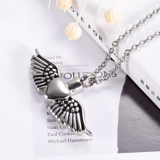 316L Stainless Steel Heart with Angel Wings Pendant Memorial Necklace