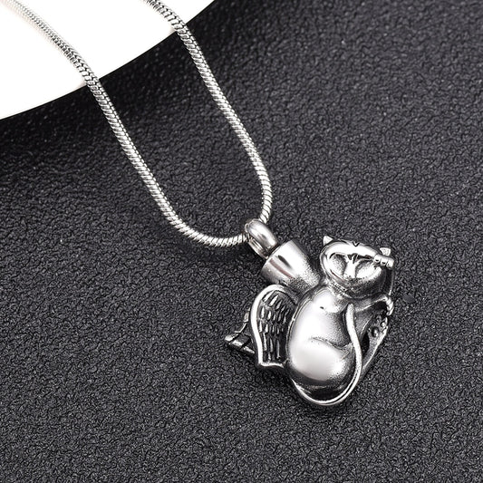 Sleeping Cat with Wings Cremation Pendant Memorial Necklace