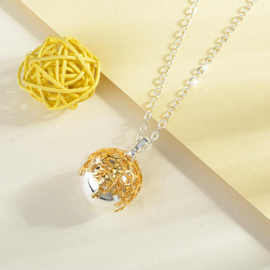 3D Silver with Gold Honeycomb Ball Pendant Necklace