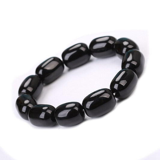 Natural Amber Black Tourmaline Healing Stone Bead Bracelet
