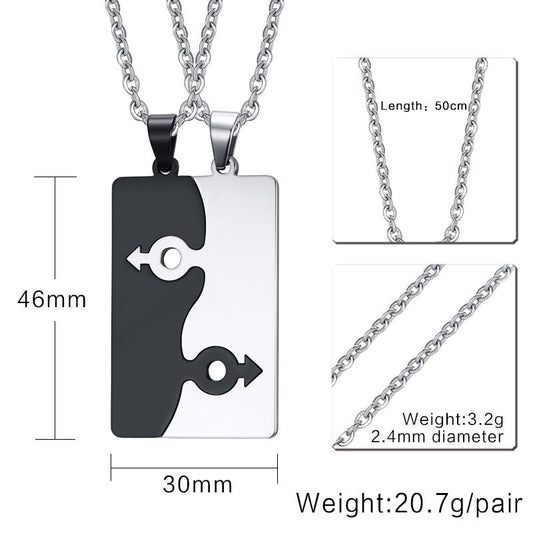 Two Tone Stainless Steel Couple Pendant Necklace