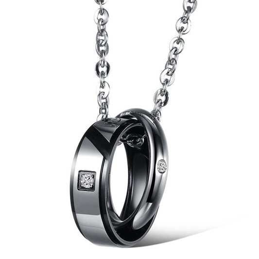 Black and Gold Rings with Cubic Zirconia Couple Pendant Necklaces