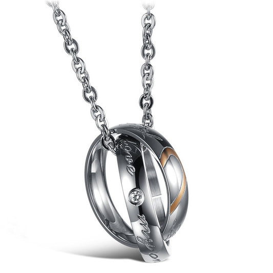 Half Heart Puzzle Couple Rings Pendant Necklaces