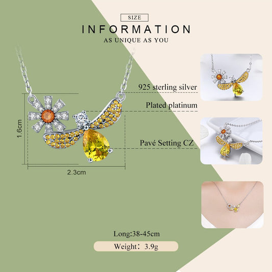 925 Sterling Silver Bee and Flower Yellow Cubic Zirconia Pendant