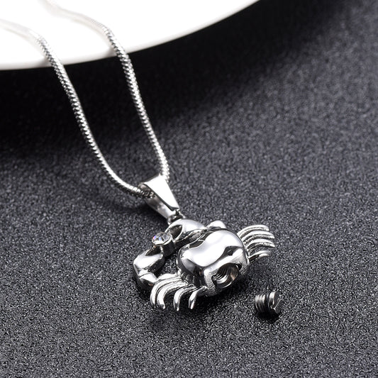 Crab with Cubic Zirconia Cremation Pendant Keepsake Necklace