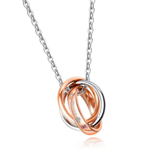 Double Round Inlaid Cubic Zirconia Lovers' Pendant Necklace