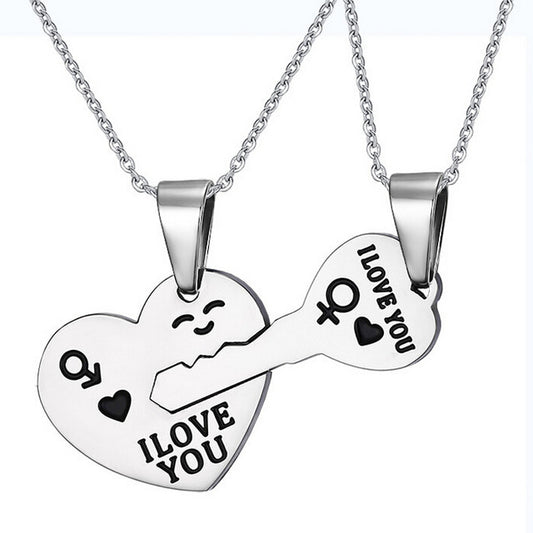 316L Stainless Steel Joint Heart and Key I Love You Pendant Necklace