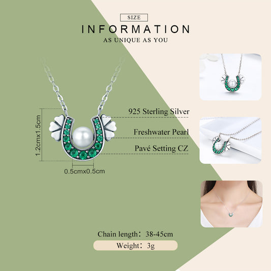 925 Sterling Silver Horseshoe Green Cubic Zirconia Pendant Necklace