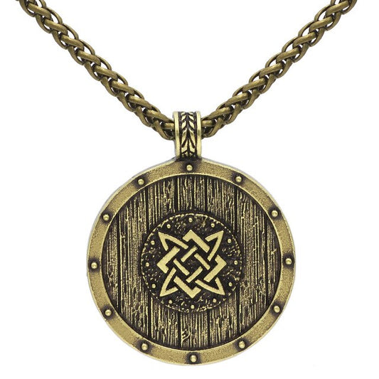 Men’s Slavic Warrior's Shield Pagan Solar Pendant Necklace