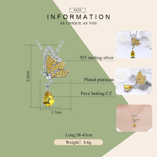 925 Sterling Silver Yellow and White Cubic Zirconia Butterfly Pendant Necklace