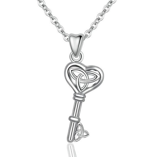 925 Sterling Silver Triquetra Key Pendant Necklace