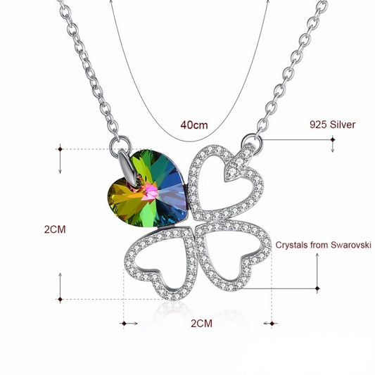 925 Sterling Silver Multicolored Four Leaf Clove Pendant Necklace