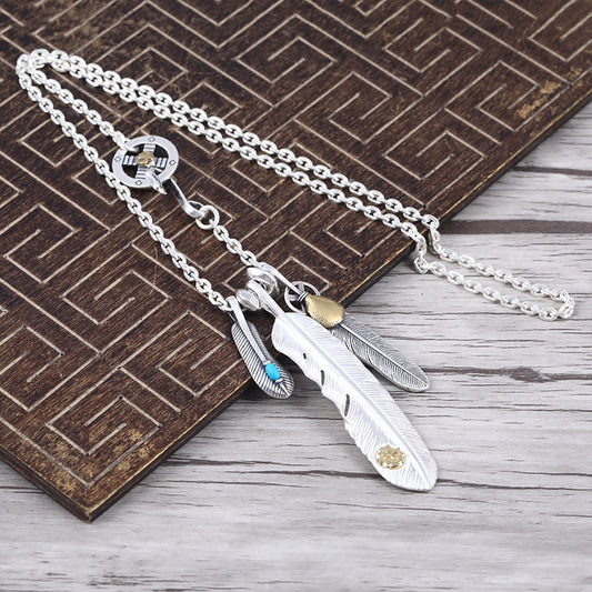 Handmade 925 Sterling Silver Indian Style Feather Pendant Necklace