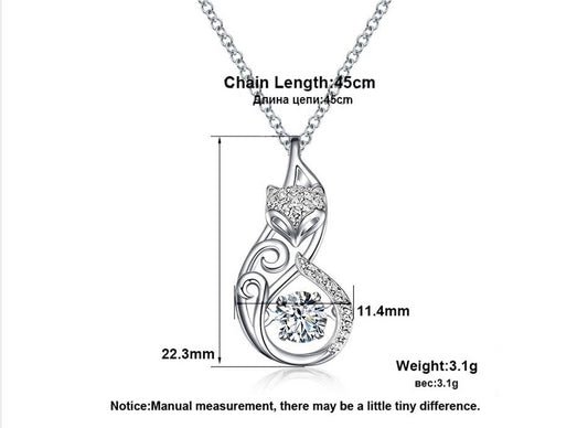 925 Sterling Silver Crystal Fox Pendant Necklace for Women