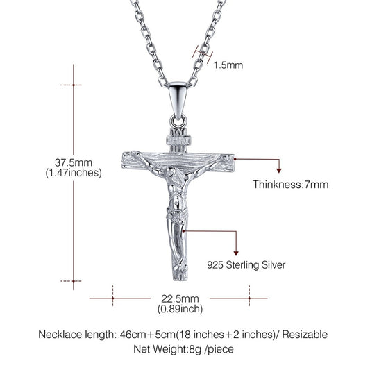 925 Sterling Silver Crucifixion of Jesus Pendant Necklace Christian Jewelry
