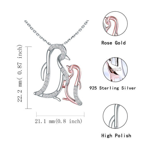 925 Sterling Silver Mom and Daughter Penguin Pendant Necklace